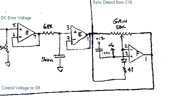 low pass filtered and passed to an inverting adjustable gain stage. The diode from the sync detector