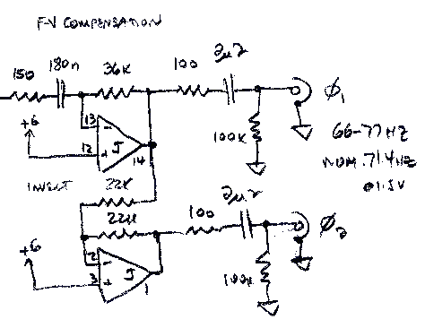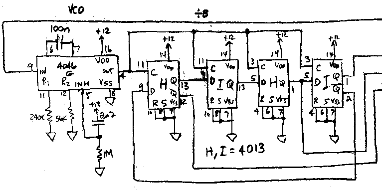 up with hysteresis and gain in an op amp. The phase detector, a 4046 PLL Chip,
