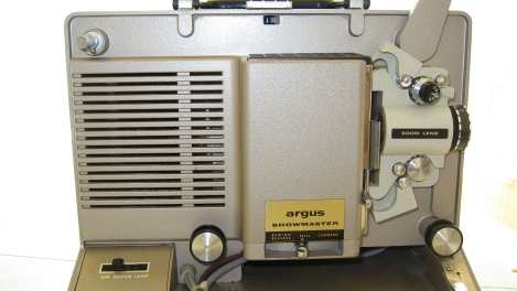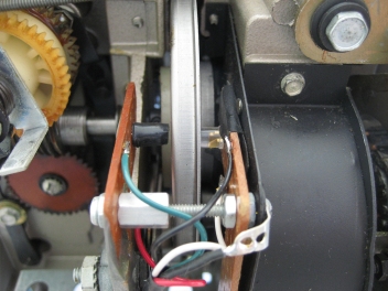 The projector speed is detected at the shutter with an infra red LED and infra red