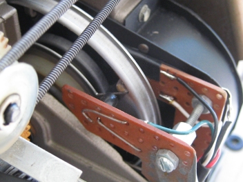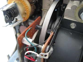 the transformer in the lower chassis. The projector motor connects to an outlet on the opposite end