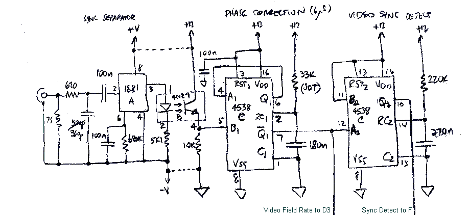 vertical sync signal. I initially included an opto isolator to break potential ground