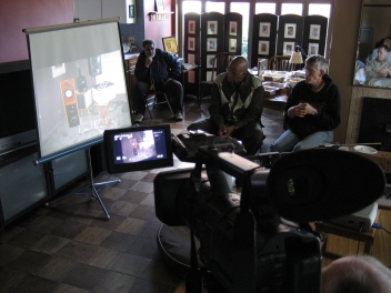 Behind the curtain! David Clark’s pictures reveal the auditory scene speaker configurations evaluated by the listeners during prior weeks. The images were streamed on the web, but somehow the computer audio failed.