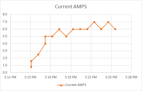 Voltage, Current, and Calculations vs. Time | Current vs. Time |